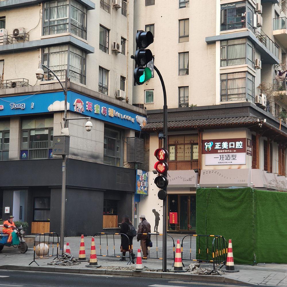 [C系] 成都天仙橋路愛情斑馬線--愛心紅綠燈/分段式亮化燈桿